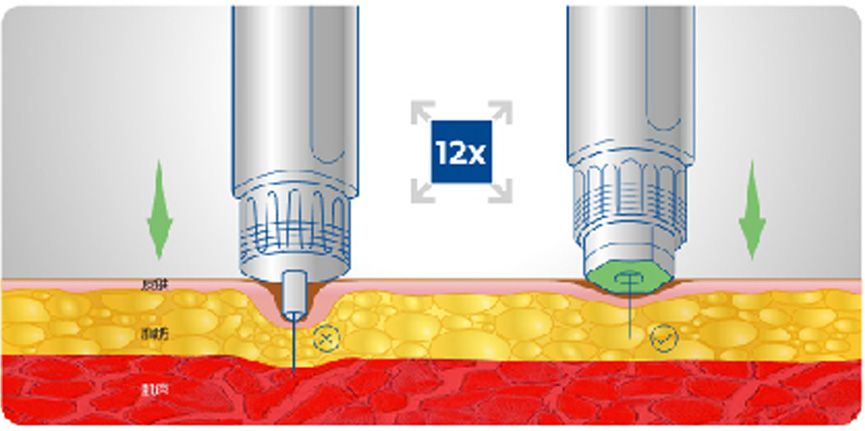 | 代号 | 颜色 | 针头粗细 | 针头长度(注射深度) | 标准包装 |